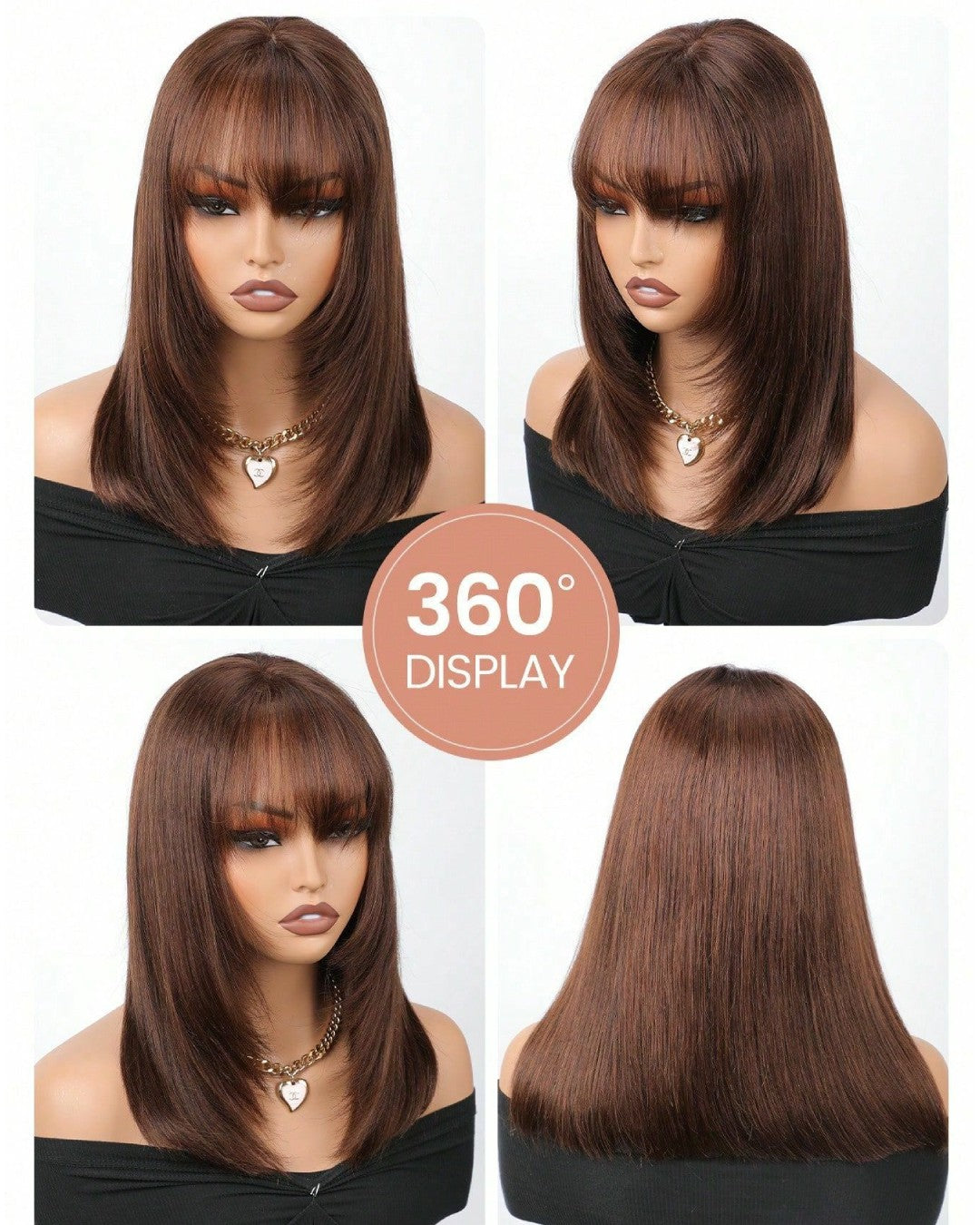 Perruque droite à reflets brun miel avec fermeture 5x5
