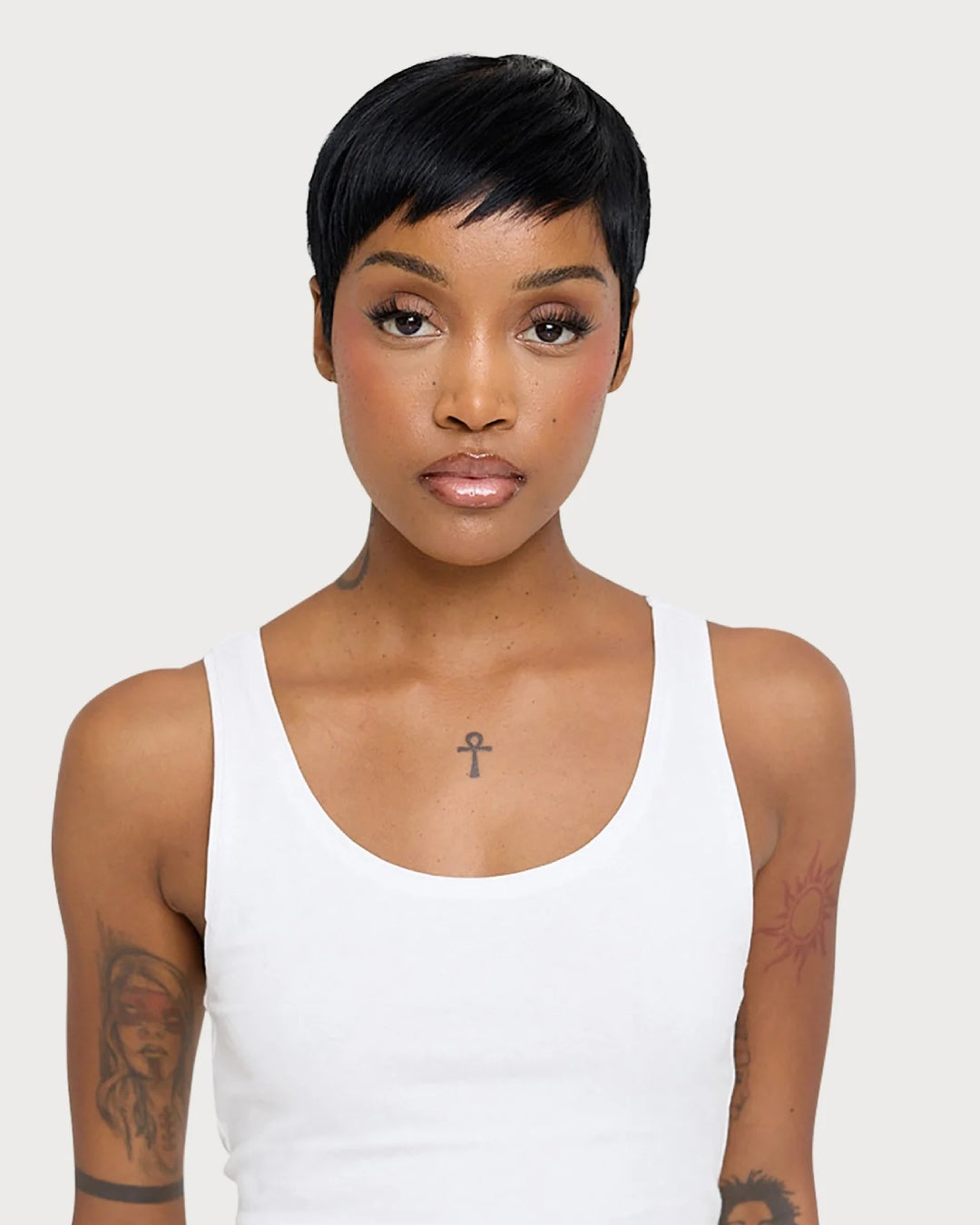 Perruque courte coupe pixie en dentelle intégrale 100% cheveux humains